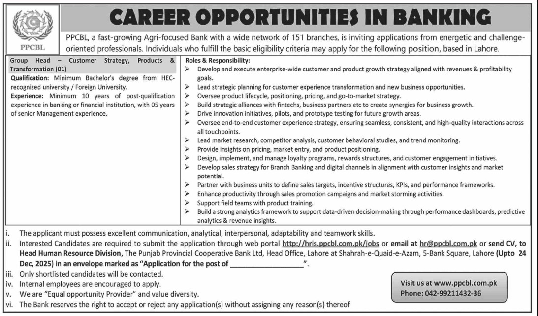 The last date to apply for this job is 25th December 2025.A Fast-Growing Agri-Focused Bank Jobs In Lahore December 2025 Advertisement
