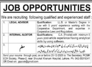 Candidates if you are seeking Private Teacher Jobs In Lahore December 2025 Apply Online if yes. It would be best if you tried to complete read this A Private Teacher Jobs because you can easily apply for these vacancies LEGAL ADVISOR INTERNAL AUDITOR. Only male candidates can apply for A Parivate Teacher Jobs In Lahore December 2025 Apply Online Qualification /Experience Required: LLB or Master’s Degree in Law with 5 years’ experience working with the Cooperative Department, and expertise in Cooperative Laws and Regulations, and more experienced candidates should apply before 20 December 2025.