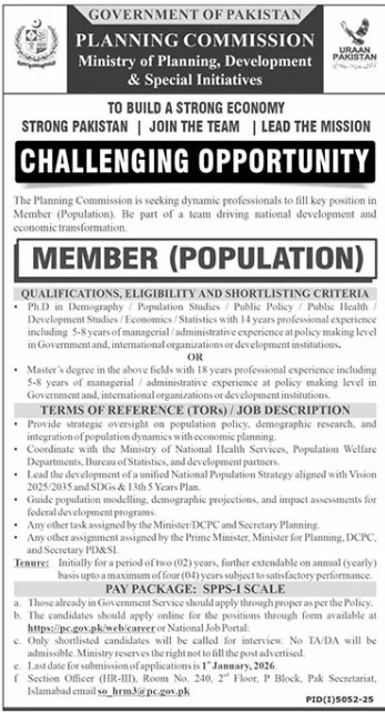 Candidates if you are seeking A Strong Economy And Initiatives Jobs In Islamabad, December 2025 if yes. It would be best if you tried to complete read A Strong Economy And Initiatives job because you can easily apply for these vacancies MEMBER (POPULATION).